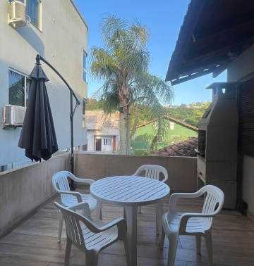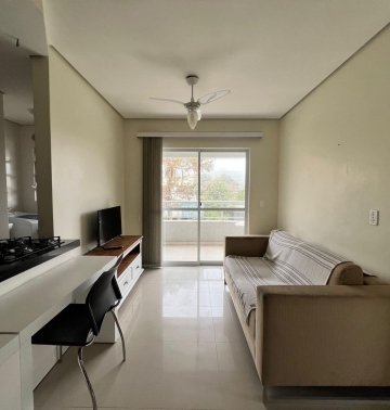 Apartamento localizado em Bombas, próximo ao mar, com sacada, área de lazer com churrasqueira. Com opção de café da manh